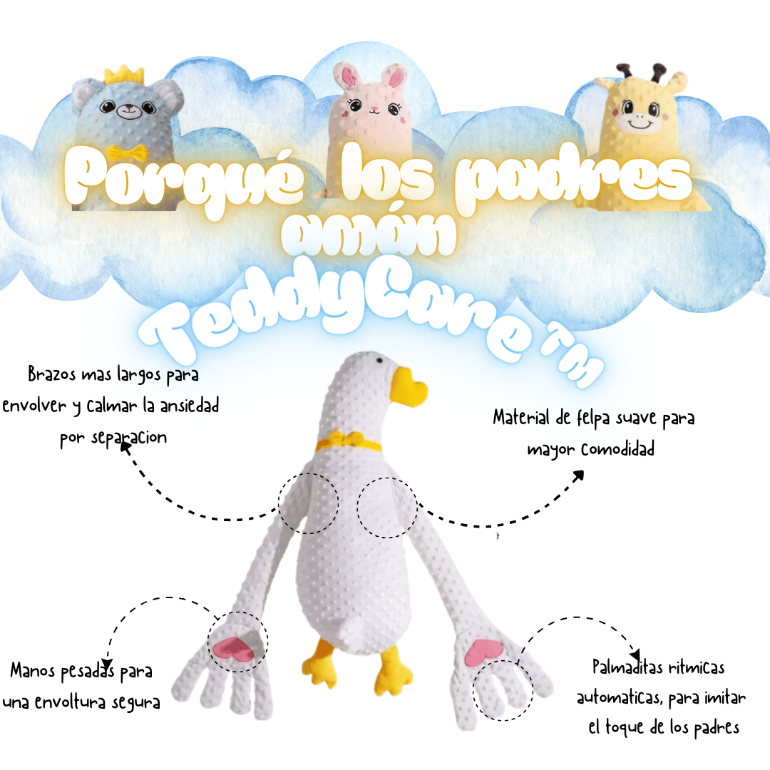 Por eso TeddyCare™ imita el calor y las caricias de mamá, para que el bebé se sienta seguro, mientras aprende a calmarse por sí solo.
