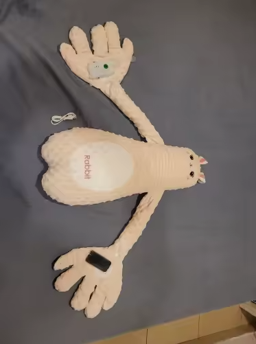En su manito principal tiene un motor de tacto suave que genera un movimiento de palmaditas rítmicas, imitando la forma en que tú arrullas a tu bebé.